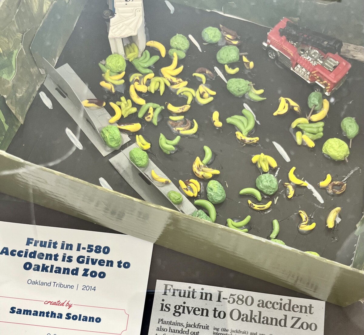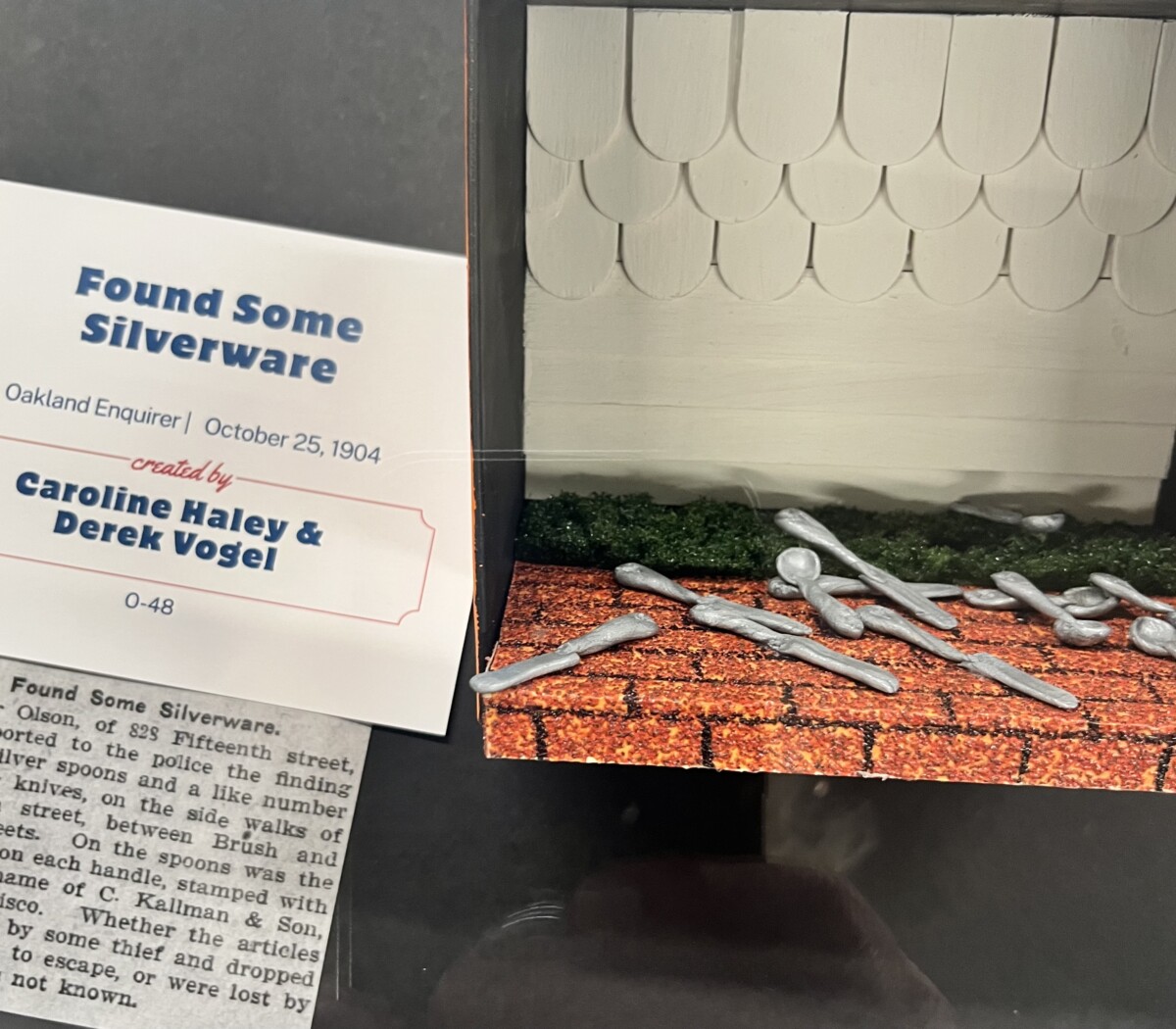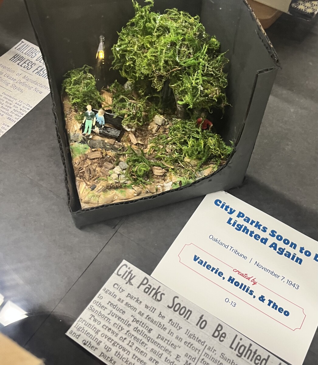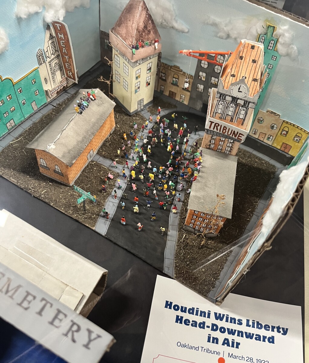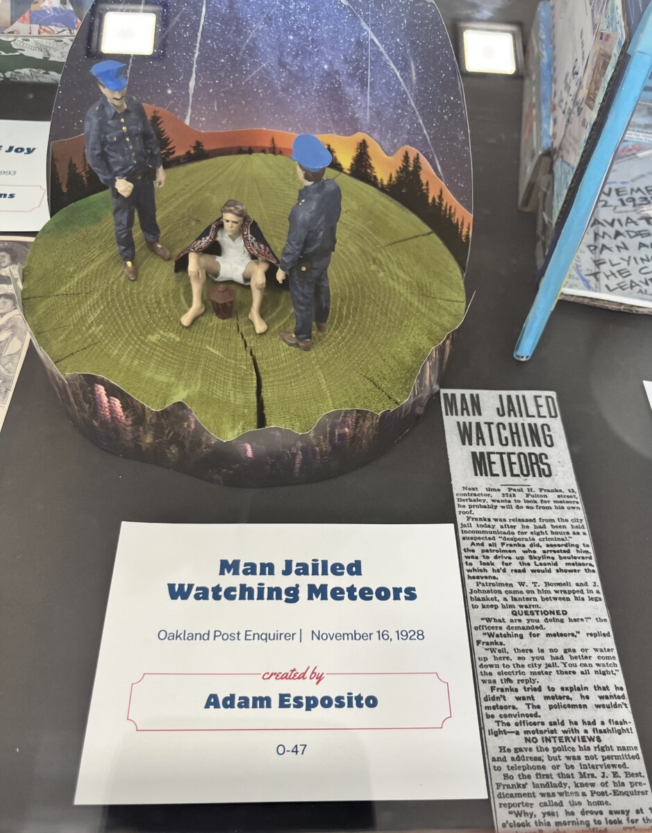 The dioramas are hilarious! They’ll be on display till November 29 in the Oakland History Center. Built by local folks, they’re based on newspaper articles found in the History Center. Most people chose funny stories to illustrate from news stories from 1904 to 2014.