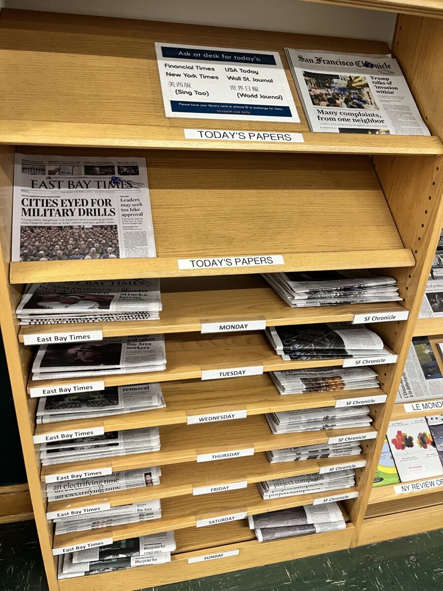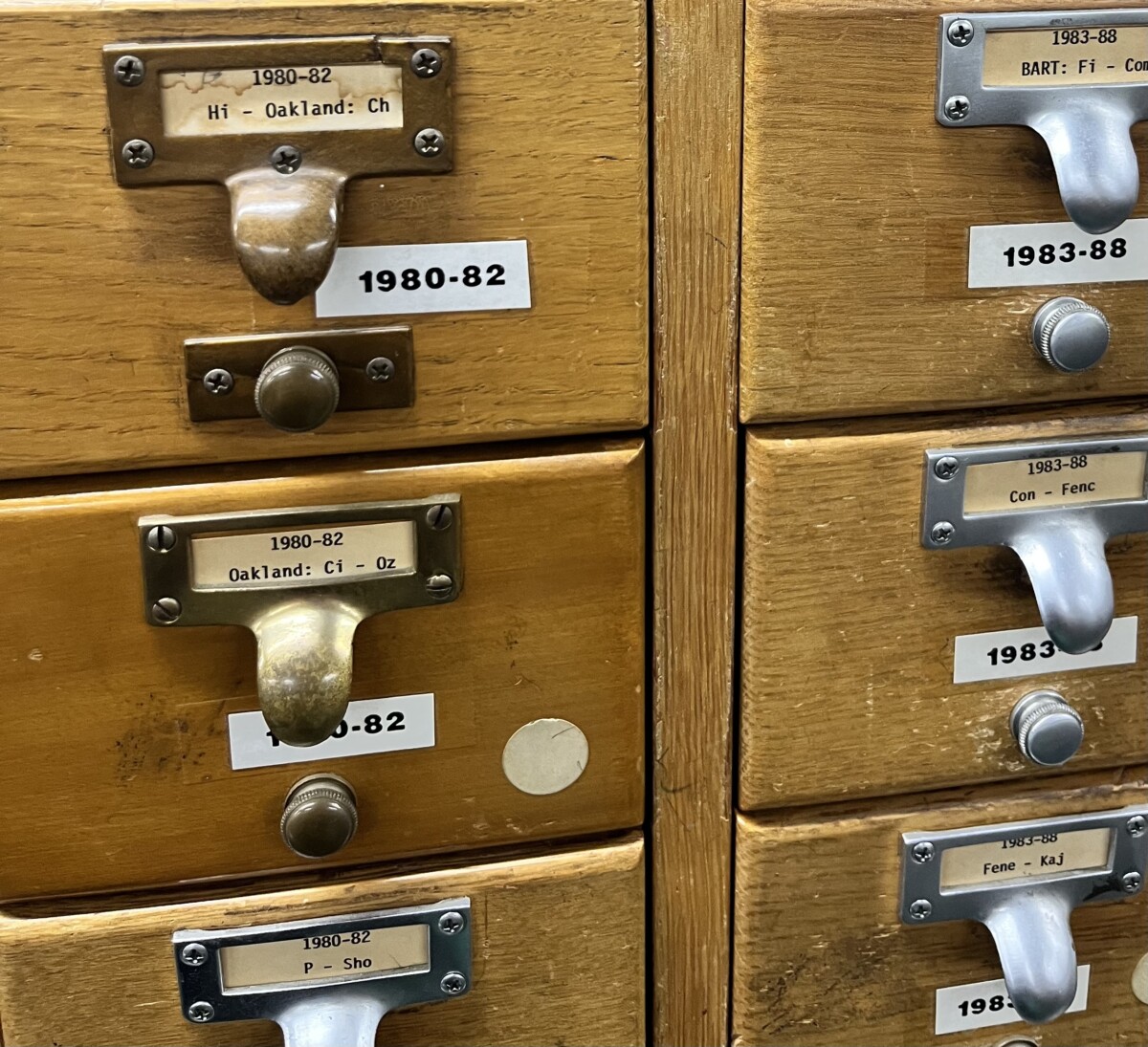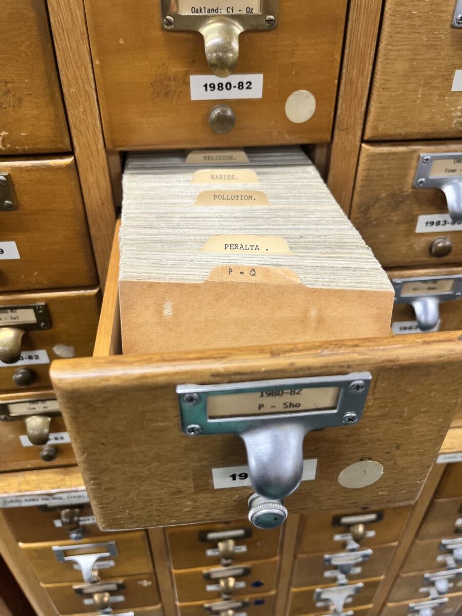 The walls on the second floor have some great photos from Oakland’s history. I visited the map room to look at gigantic map books. There’s also a reading room filled with paper magazines and newspapers! Back issues of People Magazine, anyone?
