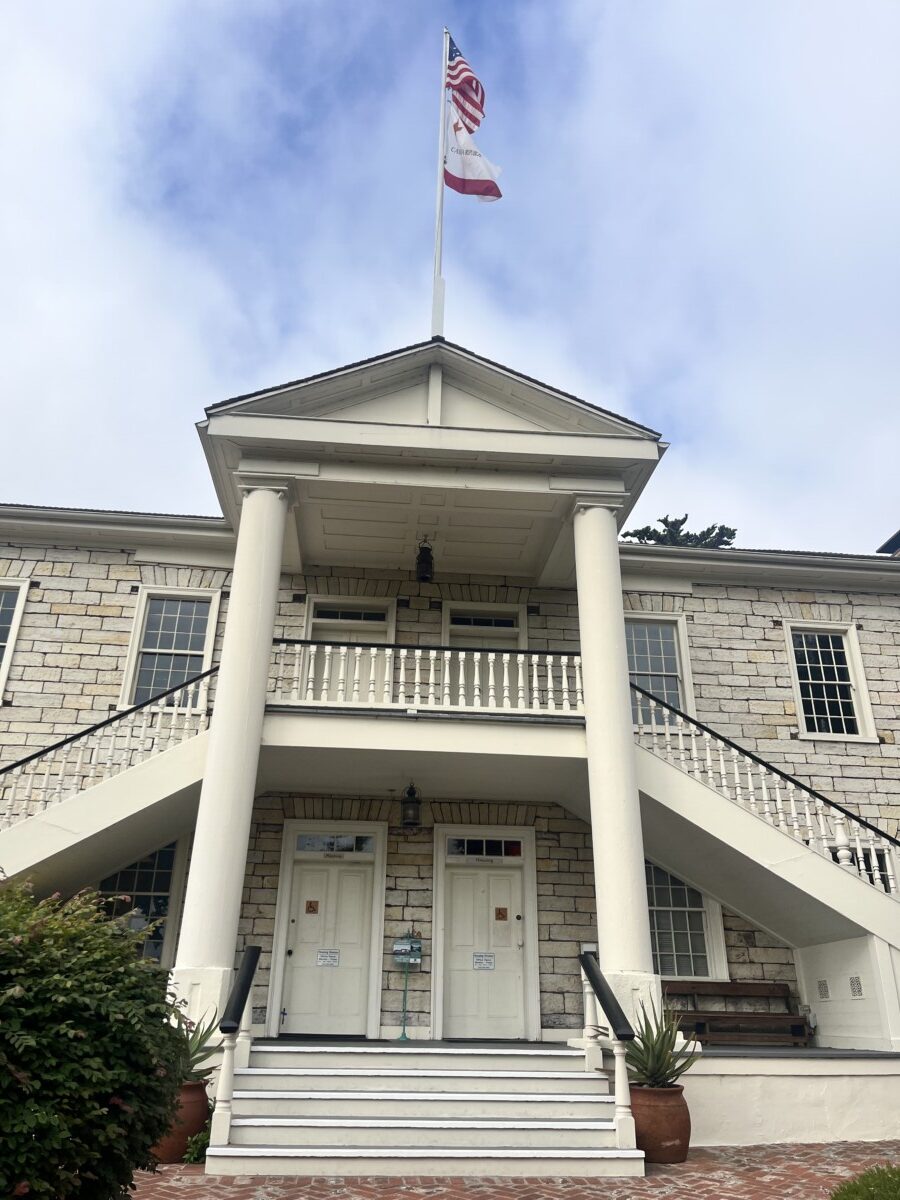 The Mission style Carnegie library was built in 1911 and was a library till 1952. It’s now the Monterey Institute of International Studies. I went inside briefly but it’s been remodeled into offices. Outside, it has the hallmark front steps but no light at the door (I don’t see it in older photos). Also, very large windows, like other Carnegie libraries. Let the light of wisdom shine in!