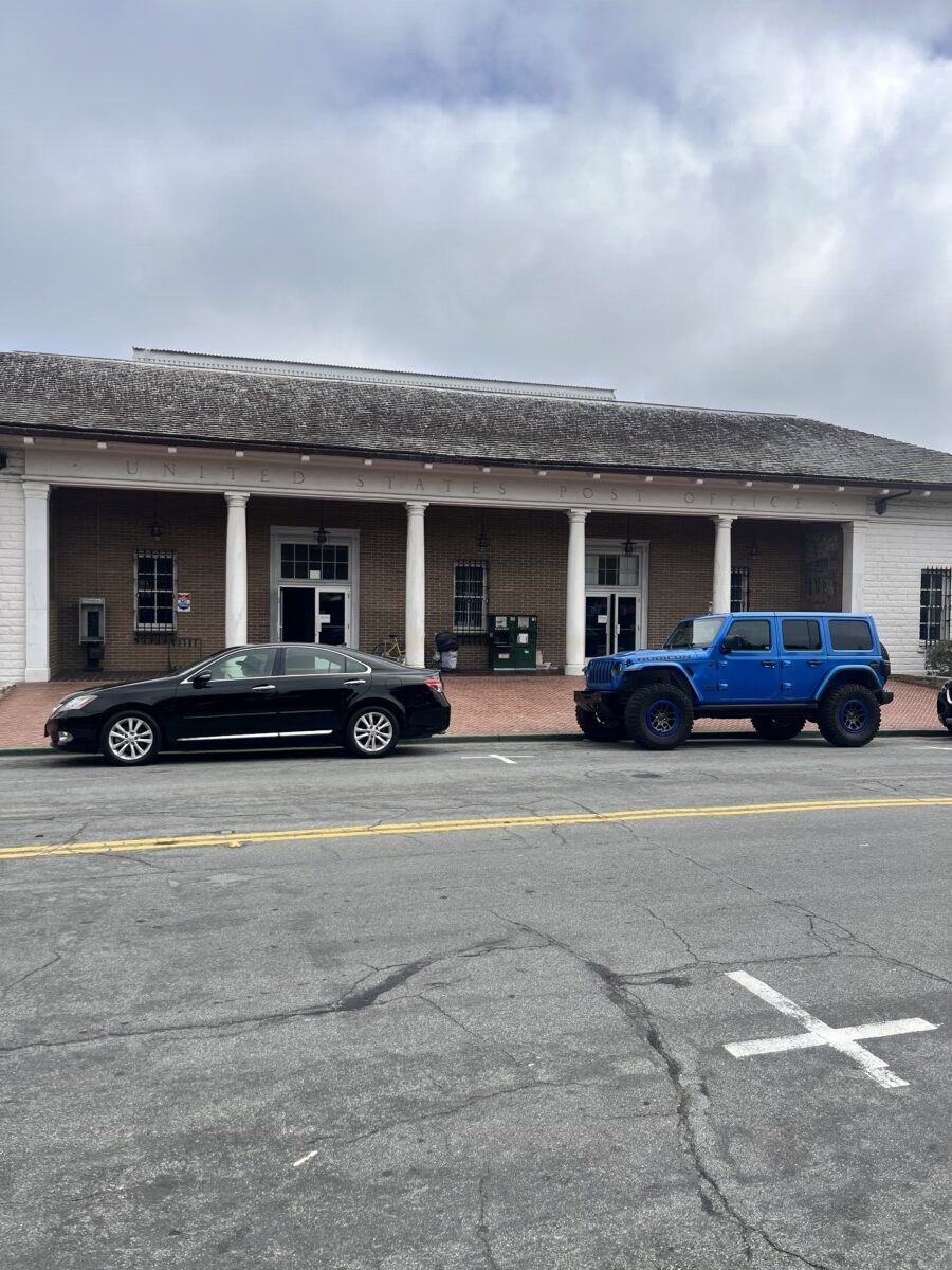I peeked briefly at the unprepossessing main post office, but then doubled back when I discovered there were WPA mosaics there, created in 1933. Their style is different from most WPA art I’ve seen. Sort of art nouveau but with crazy clouds.