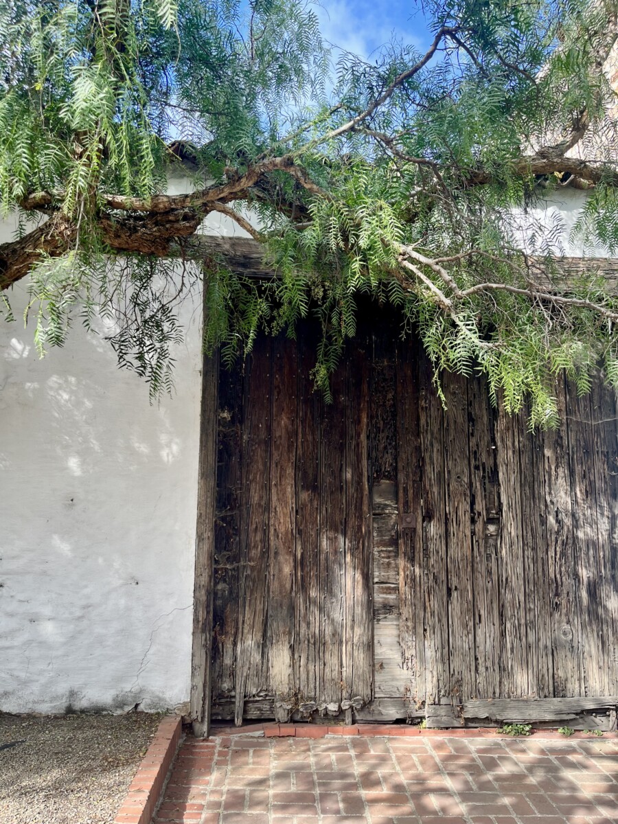 I stopped at the Cooper Molera adobe with its cool adobe wall. The museum was closed (gotta stop doing Monday expeditions!) so I took this photo through the window. The aged wooden door is on another adobe across the street.