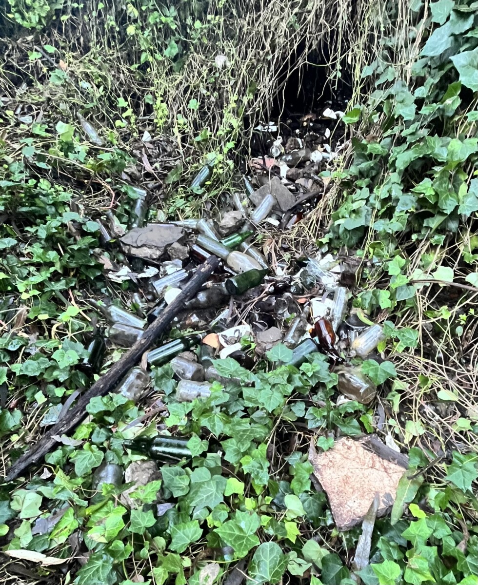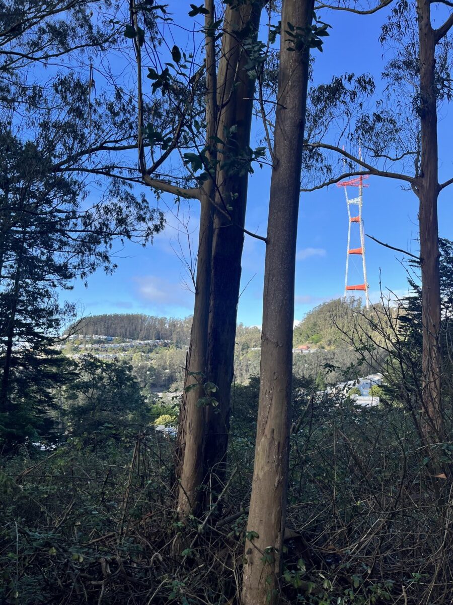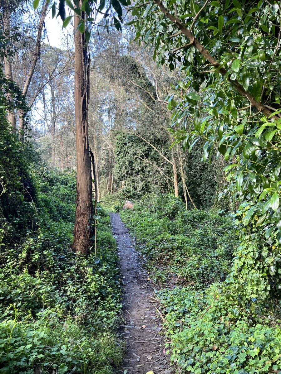 At this intimidating sign, I entered the area behind Laguna Honda Hospital. I took photos! Oh, no! Access to this trail has only been possible since 2017. It’s referred to as “Bedpan Alley” because hospital workers used to chuck trash down into the ravine. It’s not clear why some of it, mostly glass bottles, is still there. Historical record?