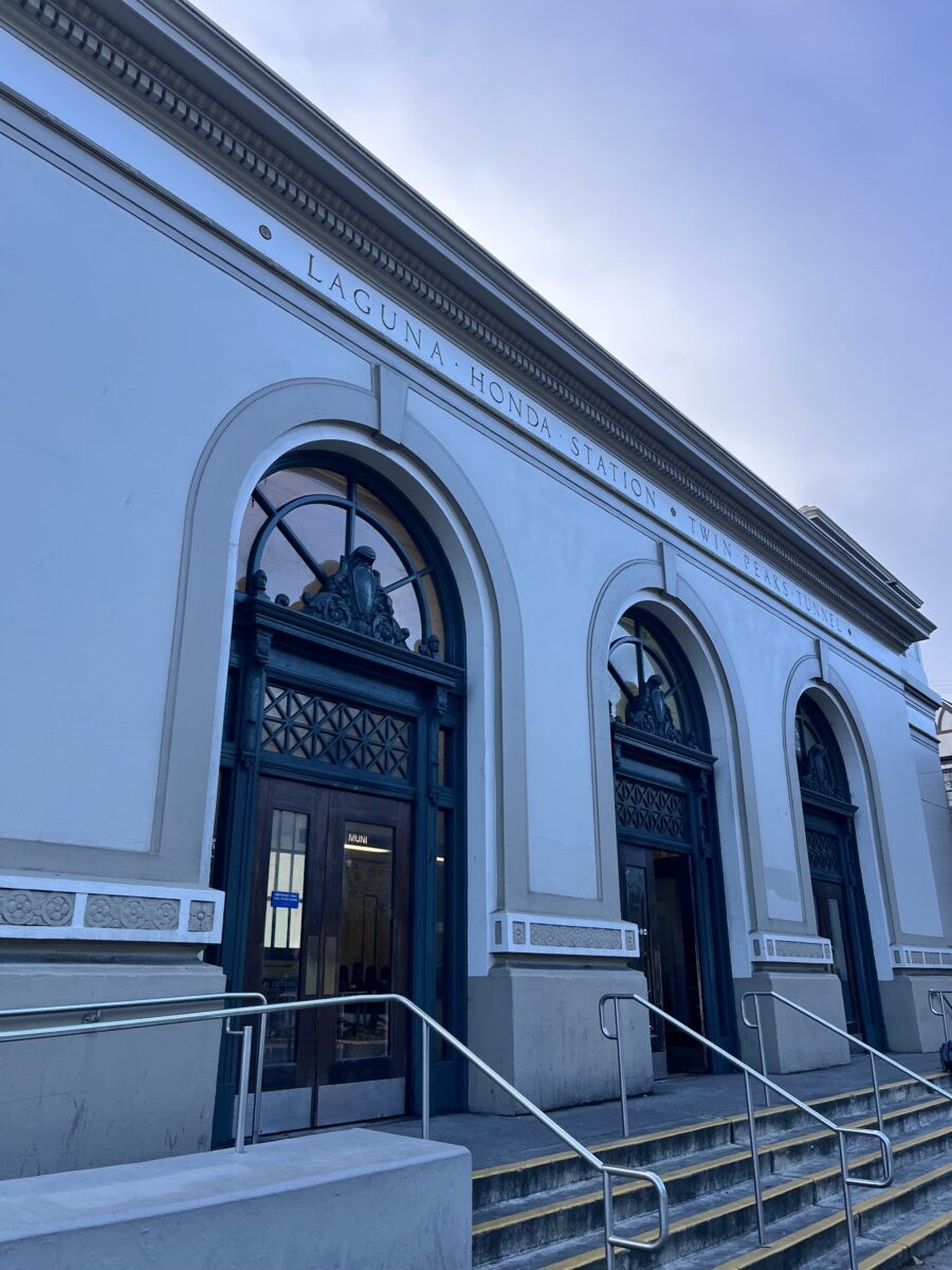 Isn’t this latticed stinkhorn fungus cool? It was melon sized but did not stink. The trail lets out on Laguna Honda Blvd. I crossed the street to the Forest Hill Muni Station. For Expedition 22, I visited sites from the movie Dirty Harry, and this station is one of them.
