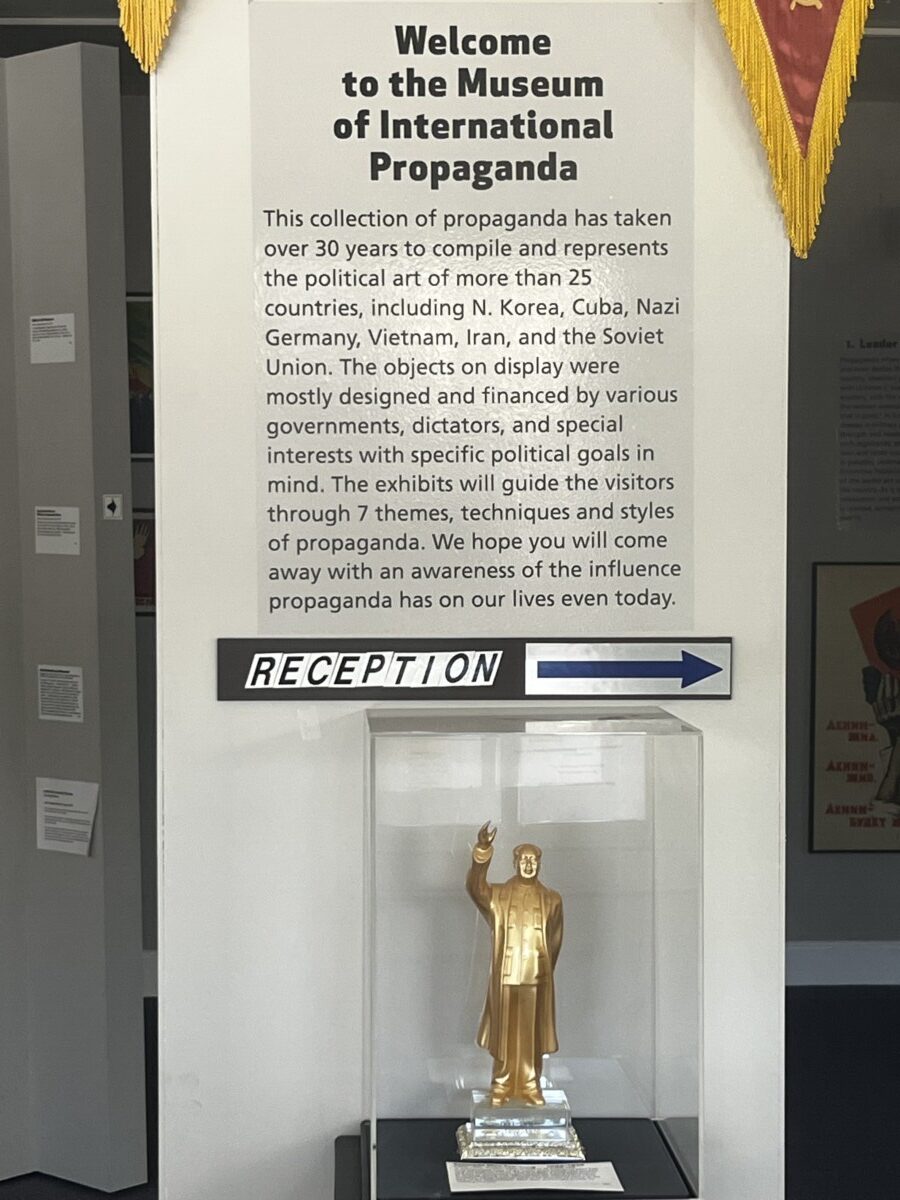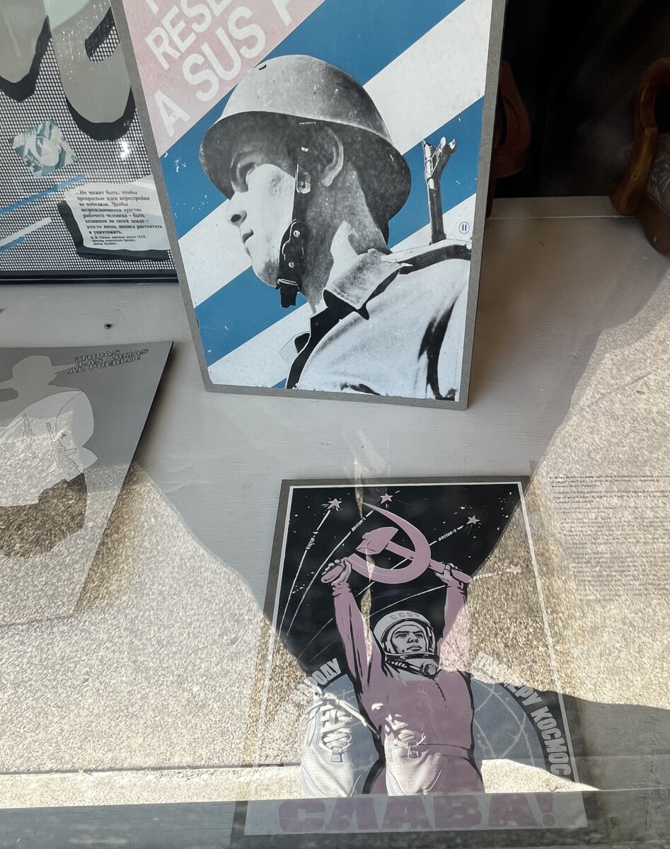 A few blocks away is the Museum of International Propaganda. It wasn’t open but there is plenty to see in the display windows. The owner grew up in Socialist Czechoslovakia. The museum’s mission is to help people become aware of propaganda and its power. I particularly like the Cosmonaut in a space suit brandishing a hammer and sickle.