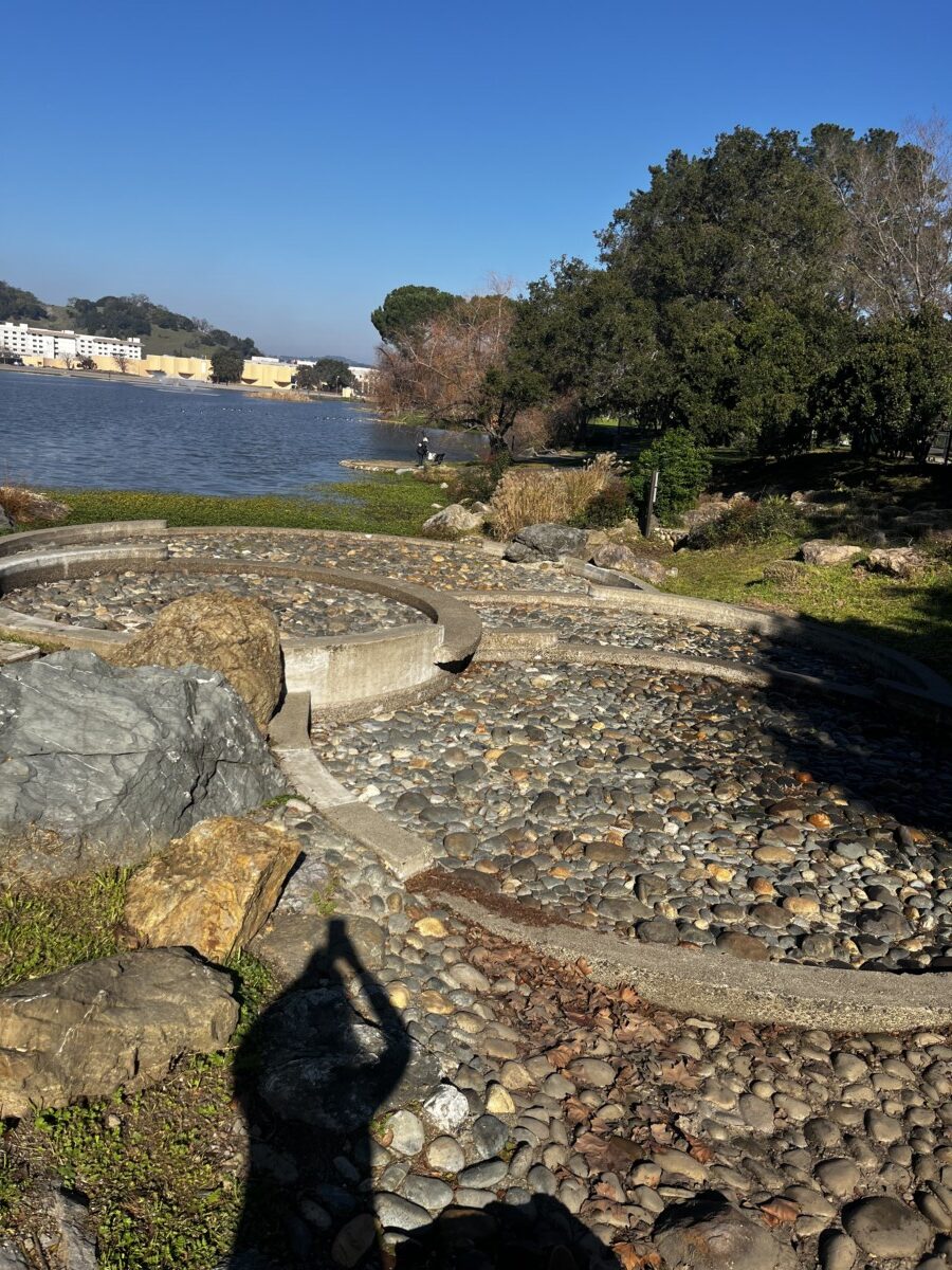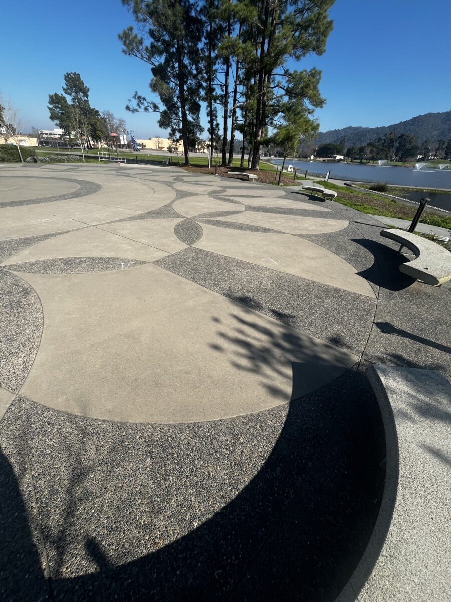 The lagoon is full of circles, in paving, bench armrests, door pulls, light bulbs, etc. Even this cute turtle! The post office has an interesting elliptical roof. The Veteran’s Auditorium is closed for restoration. The only other local Wright building is on Maiden Lane in San Francisco. I’ve walked by it many times! I’ll have to go in one day.