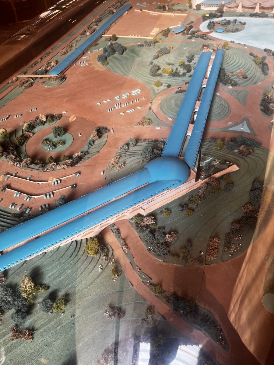 Circles, half circles and spheres are the big motifs in the entire complex. There are several dioramas of the property, one showing several things that got cut from the budget, like the children’s playground island. It’s now just an open circle in the lagoon filled with goose poop.
