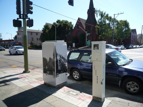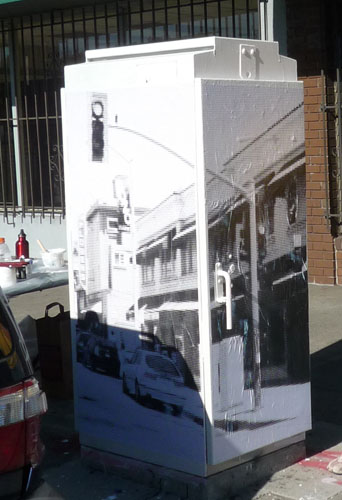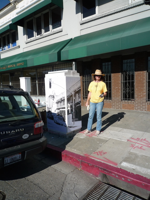I was invited to create art on a utility box in the Uptown neighborhood of Oakland, at Telegraph and 27th Street. The project is sponsored by KONO, the Koreatown Northgate business district. My aim was to draw people’s attention to their surroundings. We walk down the same streets every day and we become blind to what’s around us.